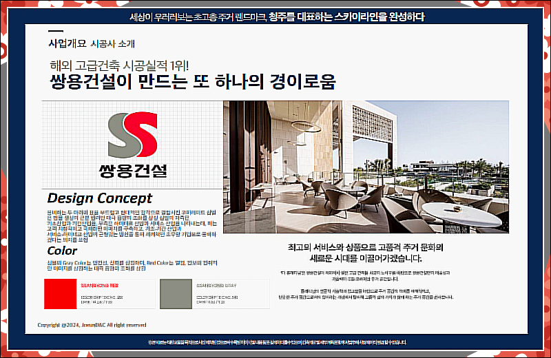 쌍용 더 플래티넘 청주 센트럴은 민간임대주택 주상복합으로 공급되는 단지로, 지하 6층~지상 49층, 총 2개 동으로 구성됩니다. 공동주택 482세대와 오피스텔 66실을 공급하며, 충청북도 청주시 가경동 1018번지 외 10필지에 위치하고 있습니다. 대지면적은 1,960평, 건축면적은 1,320평, 연면적은 29,060평이며, 68.52%의 건퍠율과 999.96%의 용적률로, 청주를 대표하는 초고층 건물로 거듭날 예정입니다.
