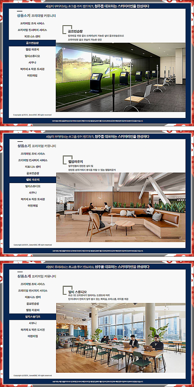 청주 쌍용 더 플래티넘 모델하우스는 해당 프로젝트가 선사하는 초고층 높이의 웅장함을 직접 확인해볼 수 있는 장소로 마련되어 있습니다. 모델하우스 내부에는 세대 구조와 인테리어 설계 등을 자세하게 확인해보실 수 있도록 준비되어 있는데요. 실제 주거 공간을 느껴볼 수 있는 장소로 구성되어 있습니다. 3면 발코니 확장으로 일반주택 대비 실사용 면적이 극대화되었으며, 일부 세대 제공되는 아일랜드 식탁은 더욱 실용적인 동선 확보로 우수한 공간 설계를 경험해보실 수 있습니다. 해당 모델하우스는 사전 예약제로 진행되고 있으며, 내부 구조와 인테리어가 궁금하신 분들은 모델하우스에 방문해보시는 것을 추천드립니다.